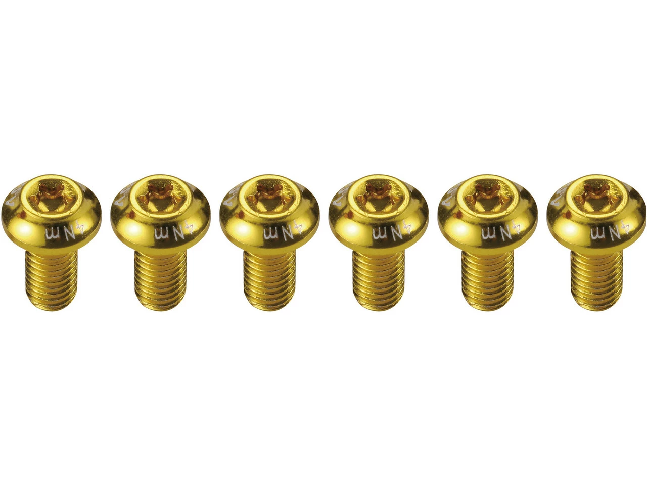 Eloxierte Aluminium-Schrauben von ASHIMA zur Befestigung der Bremsscheibe.
