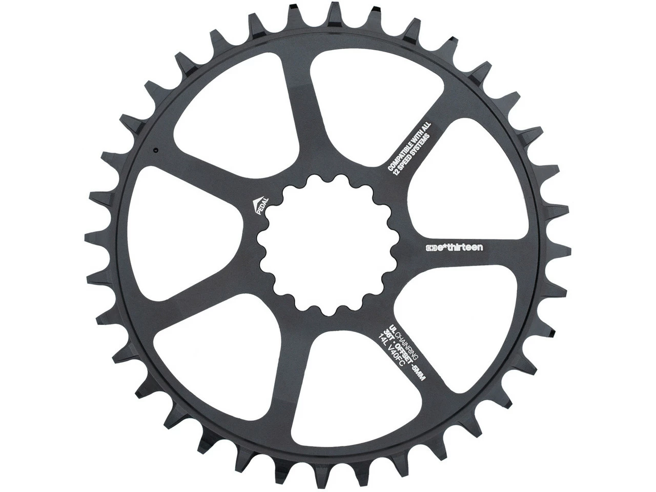 Spezifikationen:Einsatzbereich:Gravel, CrossCountryBefestigung:e*thirteen Direct MountZähne:30 Z, 32 Z, 34 Z, 36 Z, 38 Z, 40 Z, 42 ZSchaltstufen:1×10-fach, 1×11-fach, 1×12-fachTechnische Daten:Offset:-5 mmMaterial:Aluminium (7050)Features:Quick Connect™ für einfache Montage an e*thirteen KurbelnZähne im e*thirteen Dual Width Design für starken Halt der KetteHerstellernummern:30 Zähne:CR3UNA-10632 Zähne:CR3UNA-10734 Zähne:CR3UNA-10836 Zähne:CR3UNA-10938 Zähne:CR3UNA-11040 Zähne:CR3UNA-11142 Zähne:CR3UNA-112Lieferumfang:1 x Kettenblatt e*thirteen Ultralight Guidering