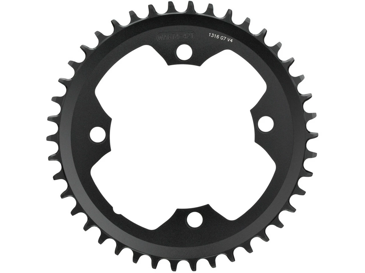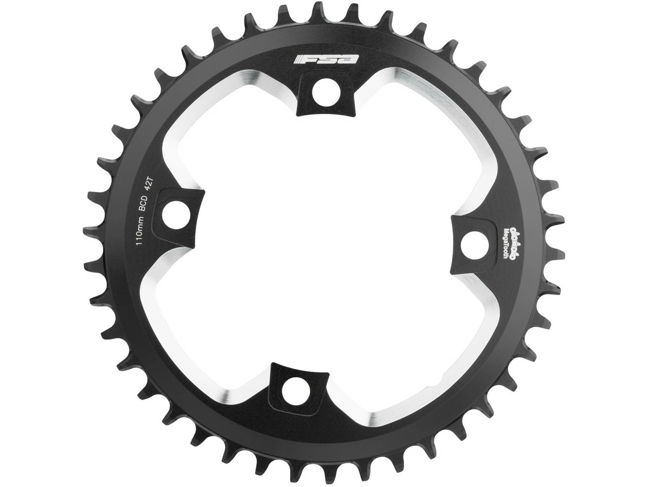 Spezifikationen:Einsatzbereich:RoadBefestigung:110 mm Lochkreis, 4-Arm asymmetrischZähne:42Z, 44ZSchaltstufen:1×11-fachTechnische Daten :Material:Aluminium (7075-T6)Features:für SRAM und Shimano 1×11-fach AntriebeCNC-bearbeiteteloxiertMegaTooth: dünne und dicke Kettenblattzähne abwechselnd verhindern KettenabwurfAusführungen:42 Zähne: