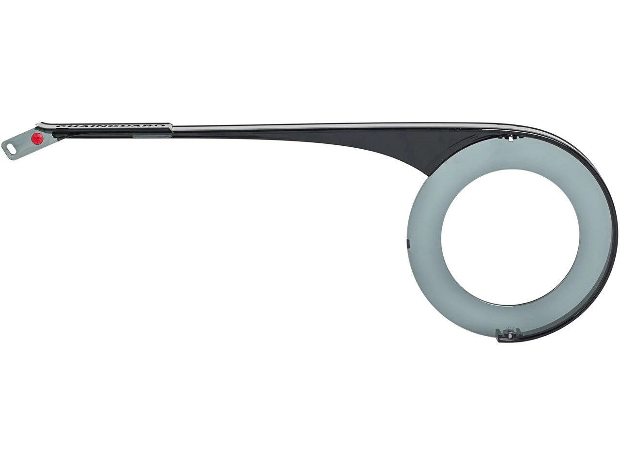 Der Hebie Chainguard 310 ist ein Kettenschutz für Nabenschaltungen mit bis zu 38 Zähne großem Kettenblatt und kommt mit längenverstellbarem Endstück.