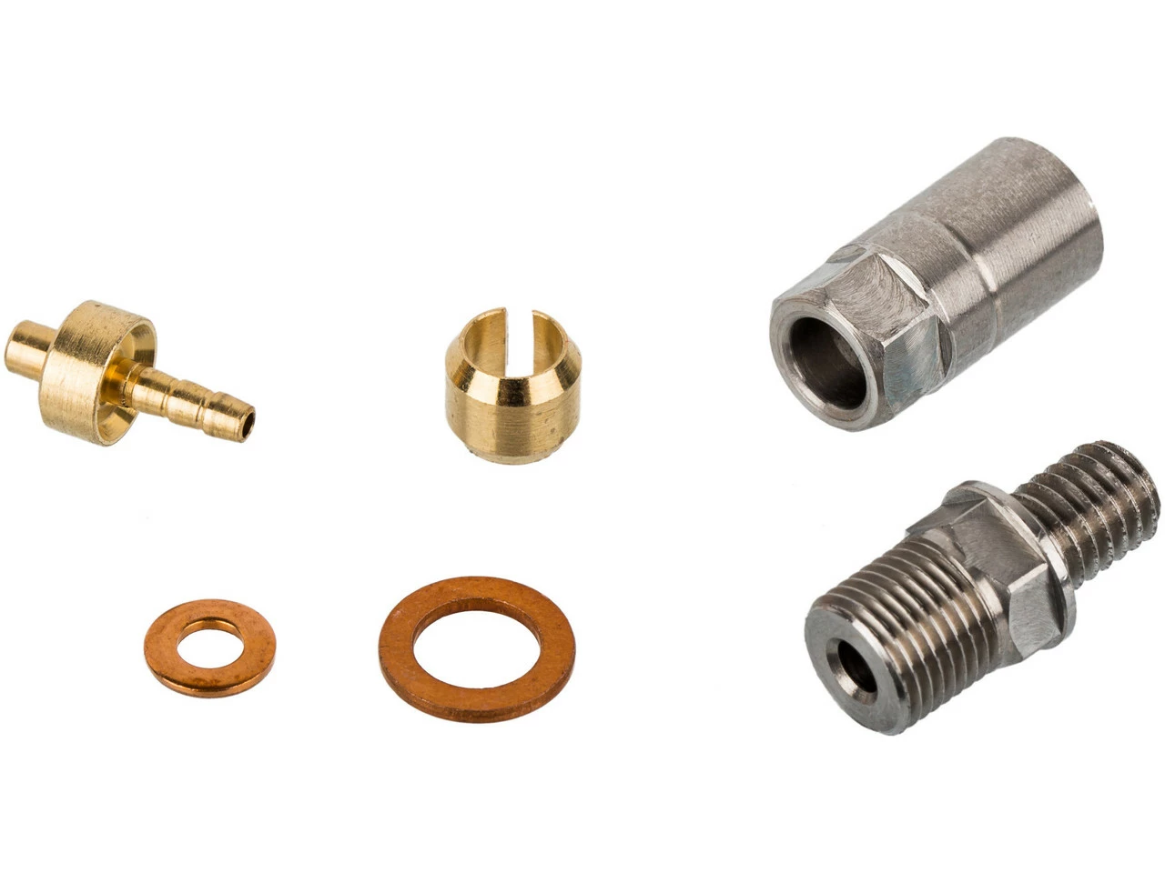 Herstellernummern:0°:HBSPC3390°:HBSPC34Lieferumfang:1 x Überwurfmutter1 x Bolzen1 x Olive1 x Abgang2 x Unterlegscheibe