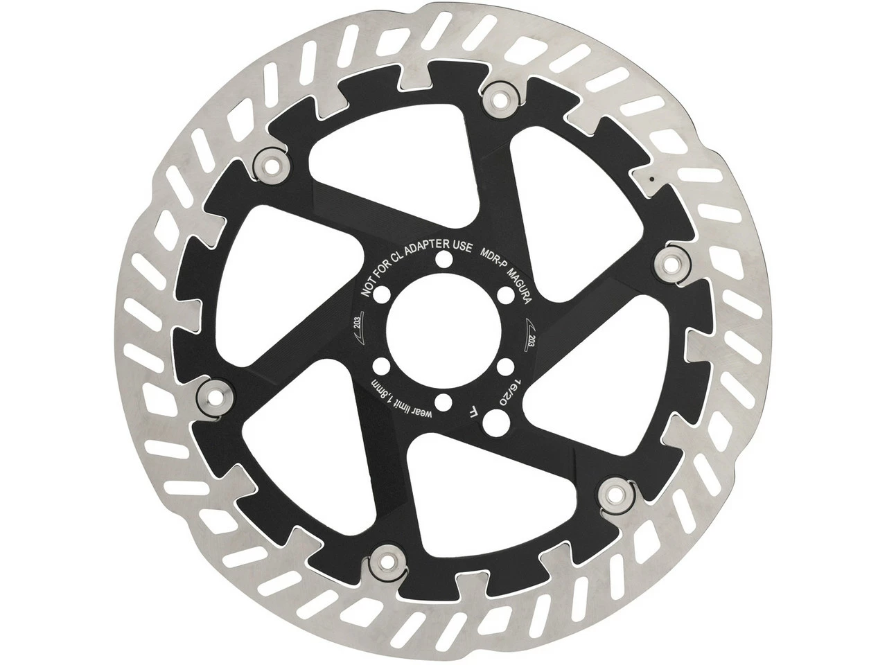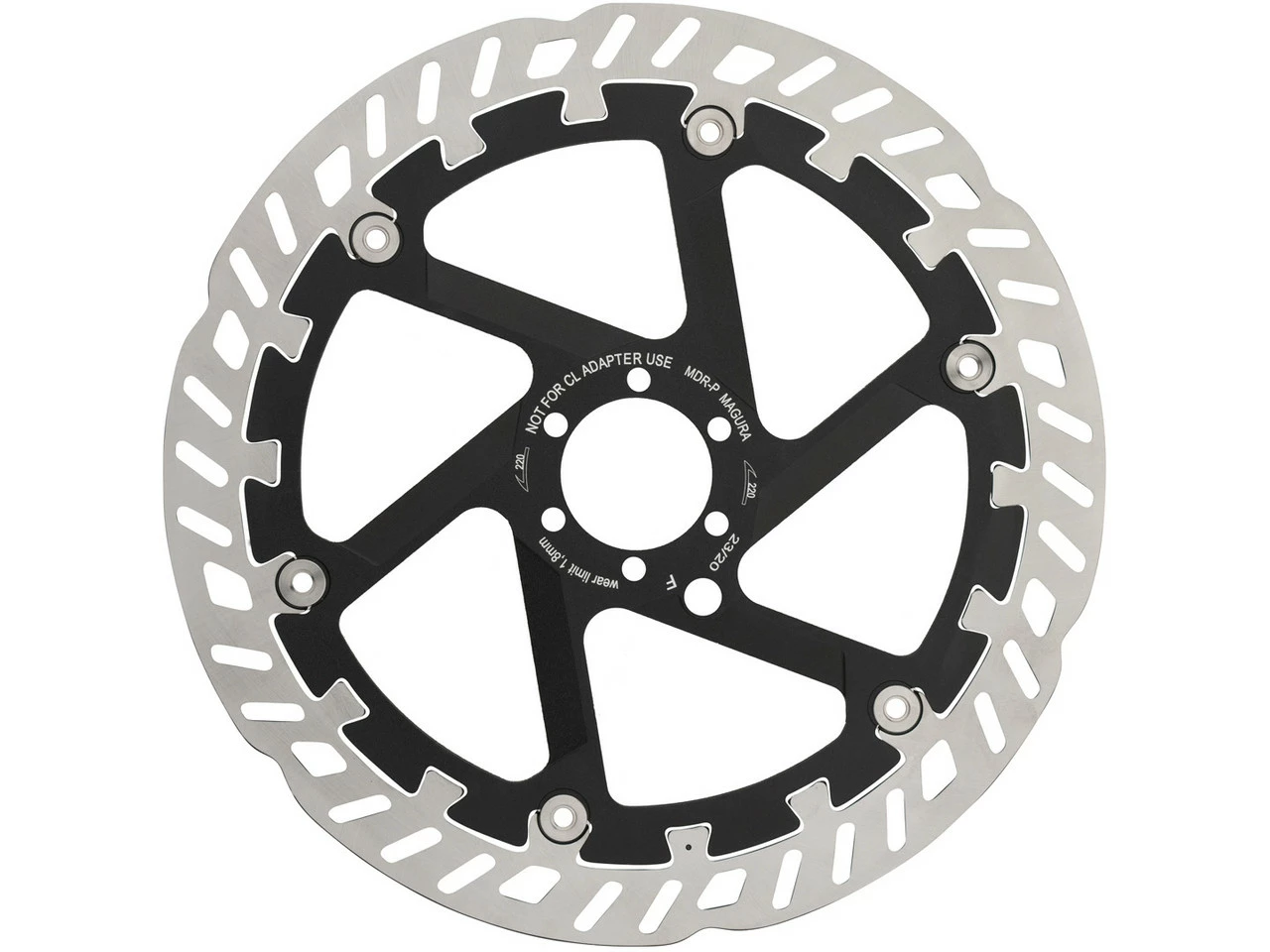 Die MDR-P 6-Loch Bremsscheibe von Magura mit zweiteiliger Bauart bewirkt konstante Bremsleistung, auch unter dauerhaft hoher Belastung. Dies gelingt dank der patentierten Dovetail Interlink Technologie, einer speziellen Verzahnung des Außen- und Innenrings. Diese ermöglicht bei Wärmeausdehnung des Außenrings eine zusätzliche Abstützung am Innenring. So wird das Drehmoment nicht ausschließlich über die Nieten, sondern über die gesamte Fläche übertragen, woraus sich eine erhöhte Steifigkeit und direkte Wärmeableitung bei Dauerbelastung ergibt, wie sie im Gravity-Einsatz vorkommt. Die Variante mit 220 mm Durchmesser schafft rund 10 % mehr Bremskraft als ein 203 mm-Modell und 20 % mehr als ein 180 mm-Modell. Die für den Belag kritischen Temperaturen werden deutlich später erreicht und die höhere Masse der Bremsscheibe verringert die Gefahr von Brems-Fading und reduziert den Belagverschleiß um 15 %. Die Bremsscheibe ist außerdem optimiert für den E-Bike-Einsatz.