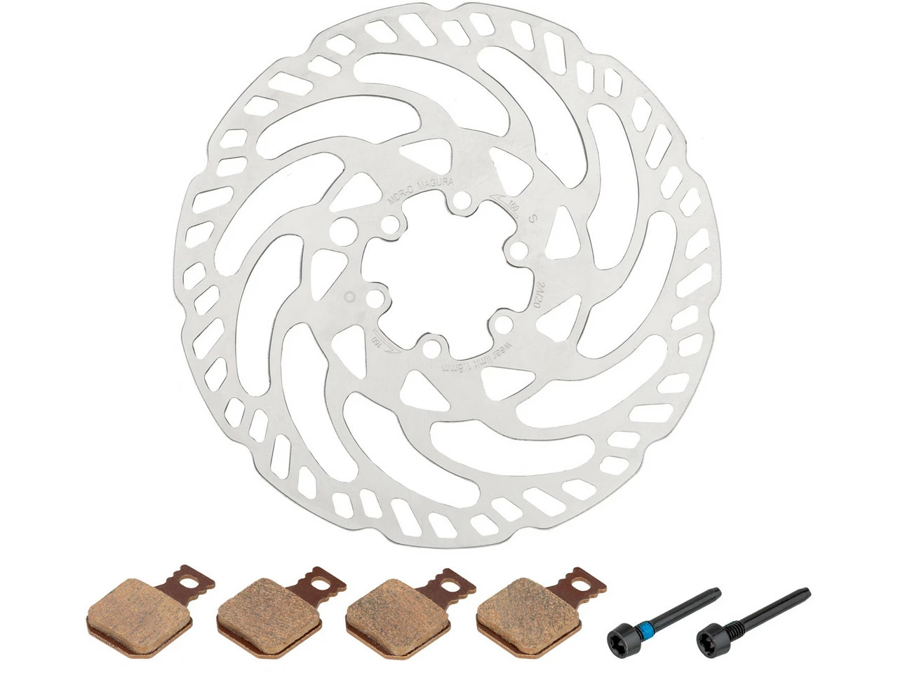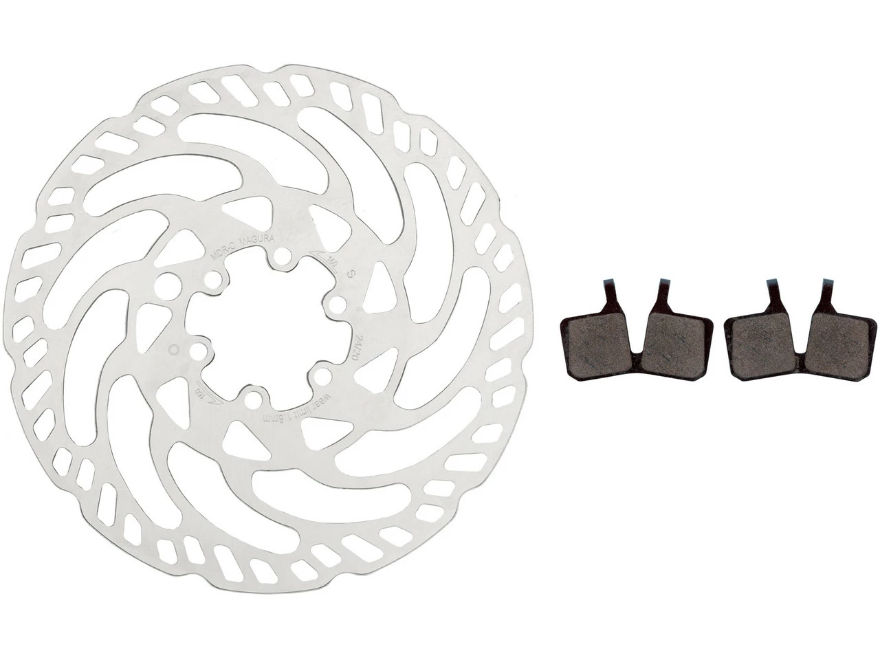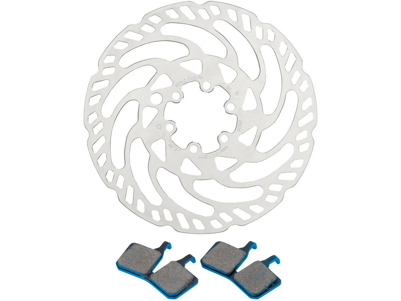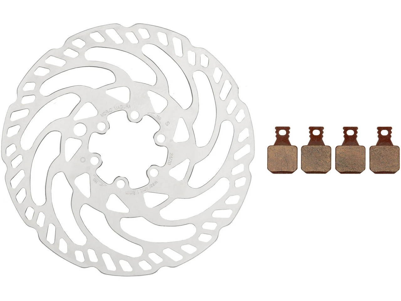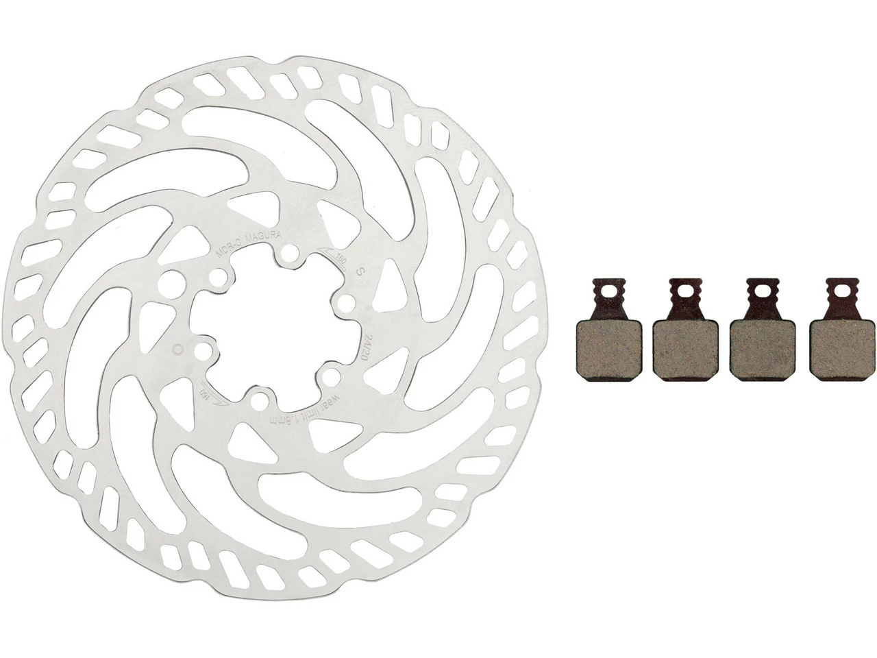 Das MDR-C Bremsscheiben und Belag Kit 6-Loch 160 mm von Magura – Bremsbeläge direkt dabei