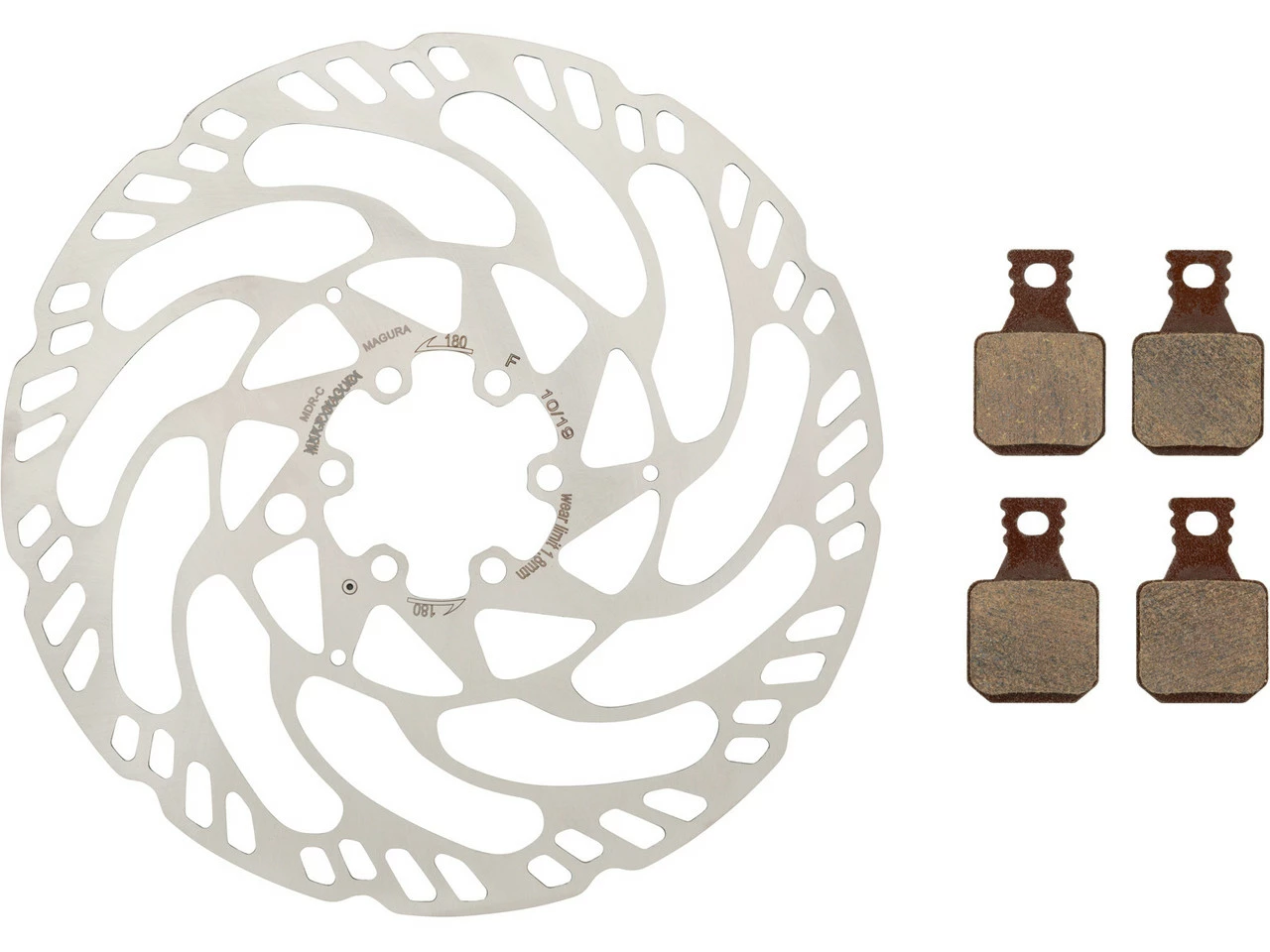 Das MDR-C Bremsscheiben und Belag Kit 6-Loch 180 mm von Magura – Bremsbeläge direkt dabei