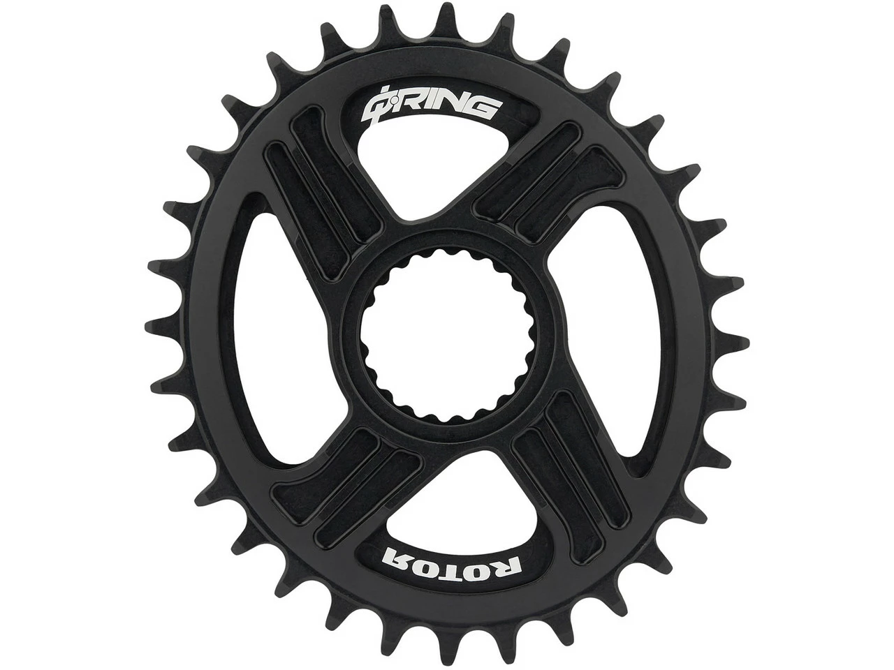Das ovale Q-Ring Kettenblatt von Rotor ist mit Shimano 1×12-fach MTB-Kurbeln und Hyperglide+-Ketten kompatibel. Die Direct-Mount-Montage spart gegenüber einer Spider-Montage Gewicht ein.