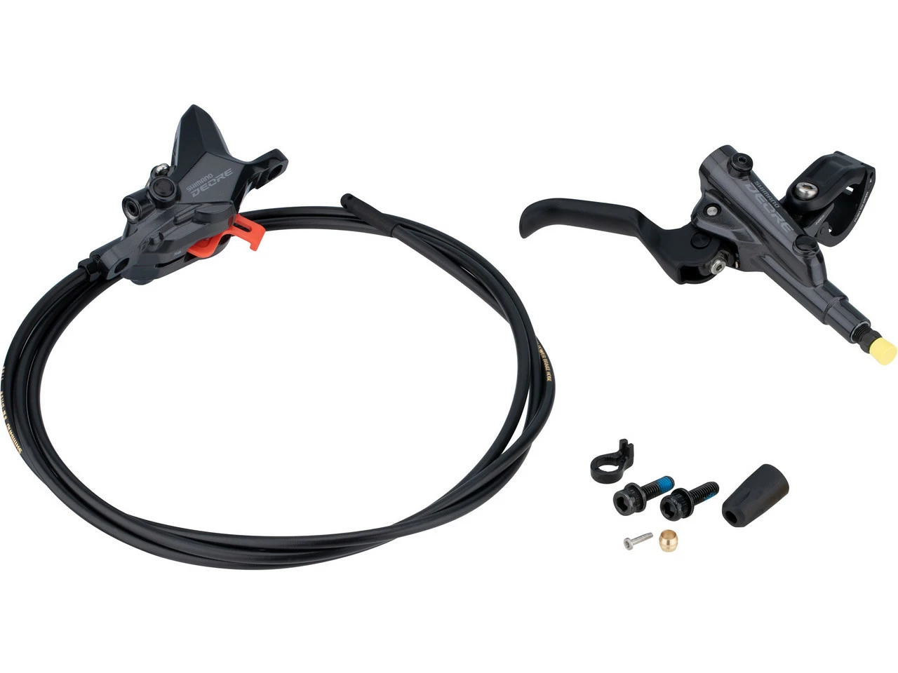 Spezifikationen:Serie:Deore M6100Einsatzbereich:All Mountain, Cross CountryBremsentyp:hydraulisch, 2-KolbenBremsmedium:MineralölLeitung:SM-BH90-SSLeitungslänge VR/HR:1000 mm/1700 mmTechnische Daten Bremssattel:Montage Bremssattel:PostmountBremsbelag:ResinBauweise:2-teiligMaterial Bremssattel:AluminiumMaterial Kolben:ResinLeitungsanschluss:geradeTechnische Daten Bremsgriff:Hebellänge:2-FingerEinstelloptionen:Griffweiteneinstellung (mit Werkzeug)Montage:Klemmschelle (geteilt), I-Spec EVBauart:rechts (seitenspezifisch), links (seitenspezifisch)Material Bremshebel:AluminiumMaterial Bremsgriffgehäuse:AluminiumLeitungsanschluss:geradeKompatibilität:Montageposition: