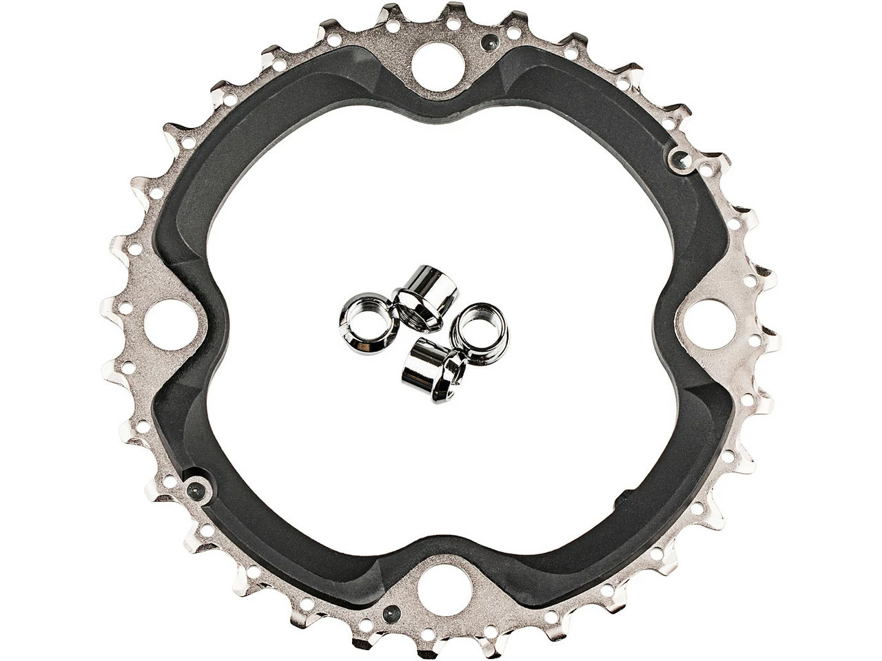 Spezifikationen:Einsatzbereich:All Mountain, Enduro, Cross Country, Touring & TrekkingBefestigung:104/64 mm Lochkreis, 4-ArmZähne:24 Z, 32 Z, 42 ZSchaltstufen:3×10-fachTechnische Daten:Kombinationsmöglichkeiten:24-32-42 ZMaterial:Stahl (24 Z), Stahl-Carbon-Komposit (32 Z), Aluminium (42 Z)Ausführungen:24 Zähne: