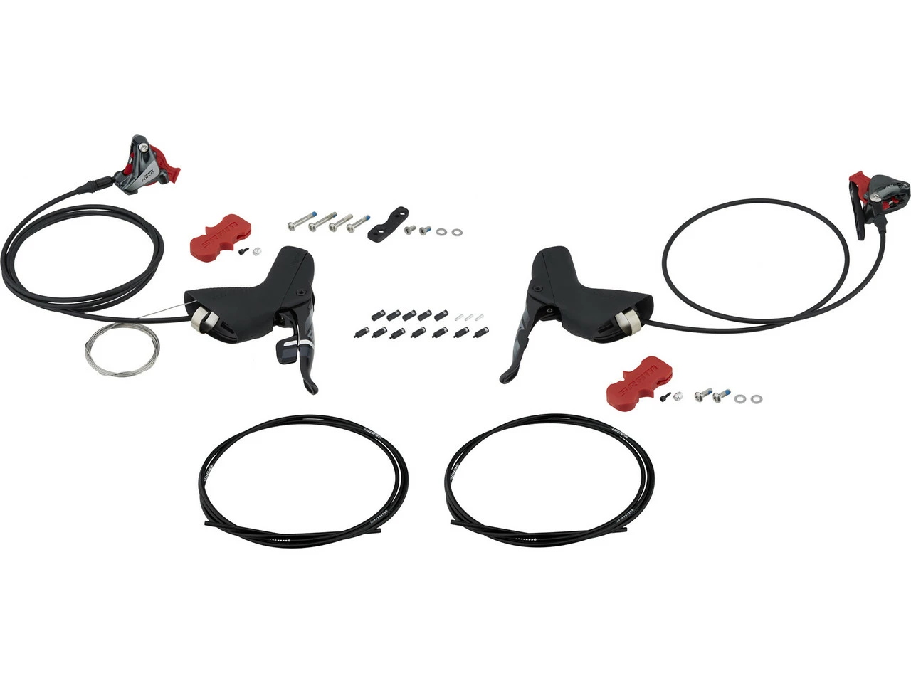 Lieferumfang:2 x Scheibenbremse SRAM Force 22 für Vorderrad und Hinterrad1 x Bremsgriff SRAM Force 11 x Schalt-/Bremsgriff SRAM Force 22 DoubleTap®inkl. Befestigungsmaterial (Passende Flat-Mount-Befestigungsschrauben für hinten gibt es je nach Kettenstrebendicke optional in Stahl oder Titanium.)montagefertig befüllt und entlüftetohne Centerline-Bremsscheibenohne Adapter