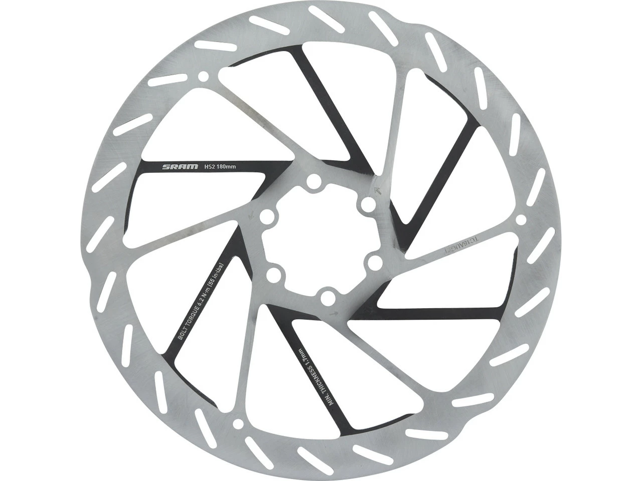 Technische Daten:Montage:6-LochDurchmesser:160 mm, 180 mm, 200 mm, 220 mmBauart:1-teiligMaterial Disc:EdelstahlMaterial Schrauben:StahlFeatures:2 mm dickhohe Wärmeableitung durch speziell beschichtete schwarze Speichenleistungsstark und geräuscharmoptimiertes Profil für hohe Traktion der Bremsbelägefür E-MTBs geeignetHerstellernummern:160 mm:00.5018.176.000180 mm:00.5018.176.001200 mm:00.5018.176.002220 mm:00.5018.176.003Lieferumfang:1 x Bremsscheibe SRAM HS2 6-Loch6 x Schraube SRAM