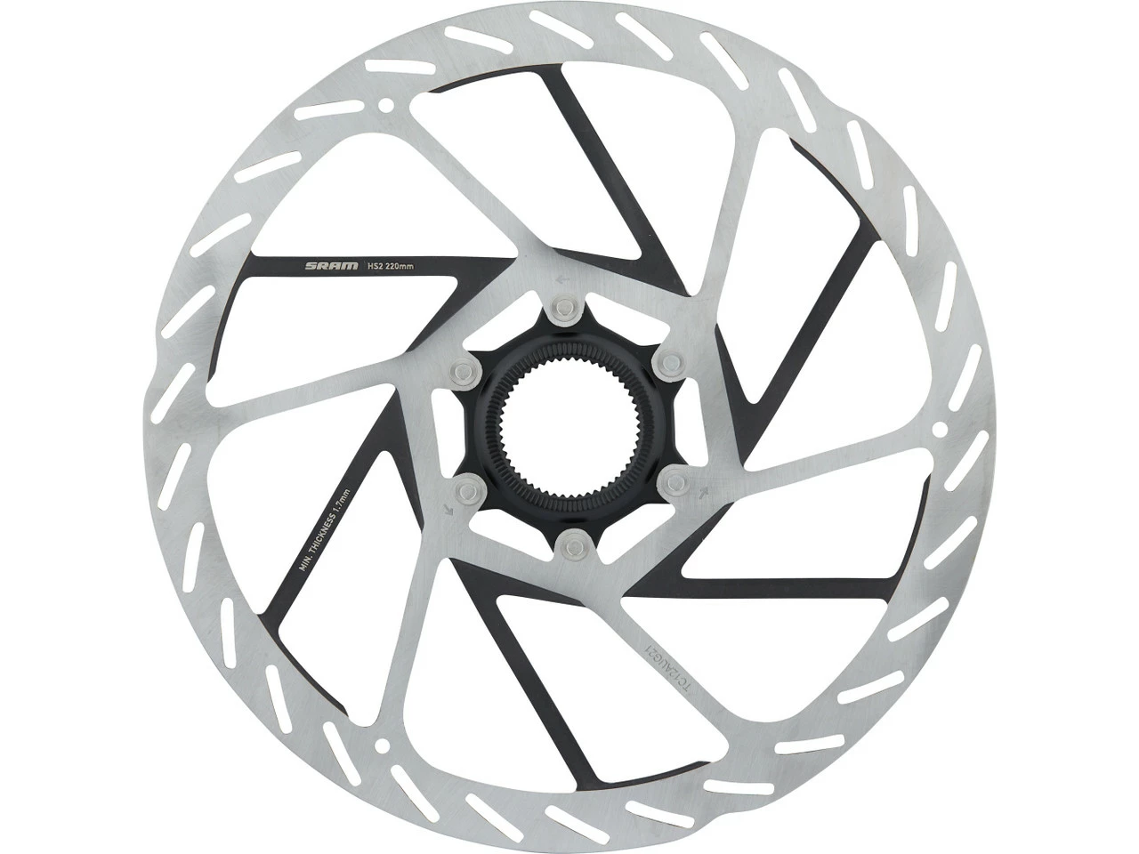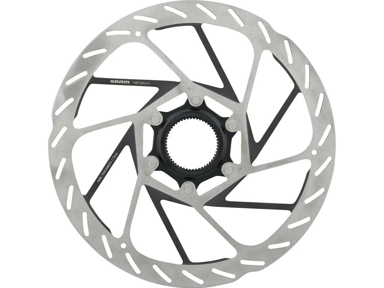 Technische Daten:Montage:Center LockDurchmesser:160 mm, 180 mm, 200 mm, 220 mmBauart:2-teiligMaterial Disc:EdelstahlMaterial Spider:AluminiumFeatures:2 mm dickhohe Wärmeableitung durch speziell beschichtete schwarze Speichenleistungsstark und geräuscharmoptimiertes Profil für hohe Traktion der Bremsbelägefür E-MTBs geeignetHerstellernummern:160 mm:00.5018.176.004180 mm:00.5018.176.005200 mm:00.5018.176.006220 mm:00.5018.176.007Lieferumfang:1 x Bremsscheibe SRAM HS2 Center Lock1 x Lockring SRAM