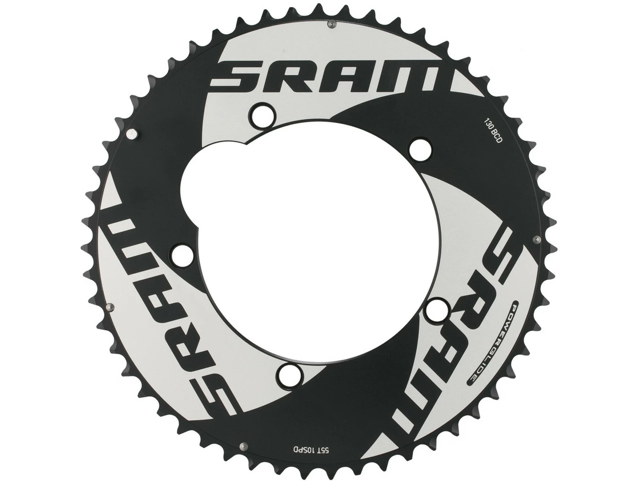 SRAM TT Kettenblätter sind mit 53, 54 und 55 Zähnen und einem entsprechenden Innenblatt mit 42 Zähnen erhältlich. Die PowerGlide™-Kettenblätter wurden in den vergangenen Jahren von den weltbesten Zeitfahrern eingesetzt. Sie sind robust, steif und aerodynamisch und sehen mit der per Laser-Ätzung aufgebrachten SRAM-Grafik gefährlich schnell aus.