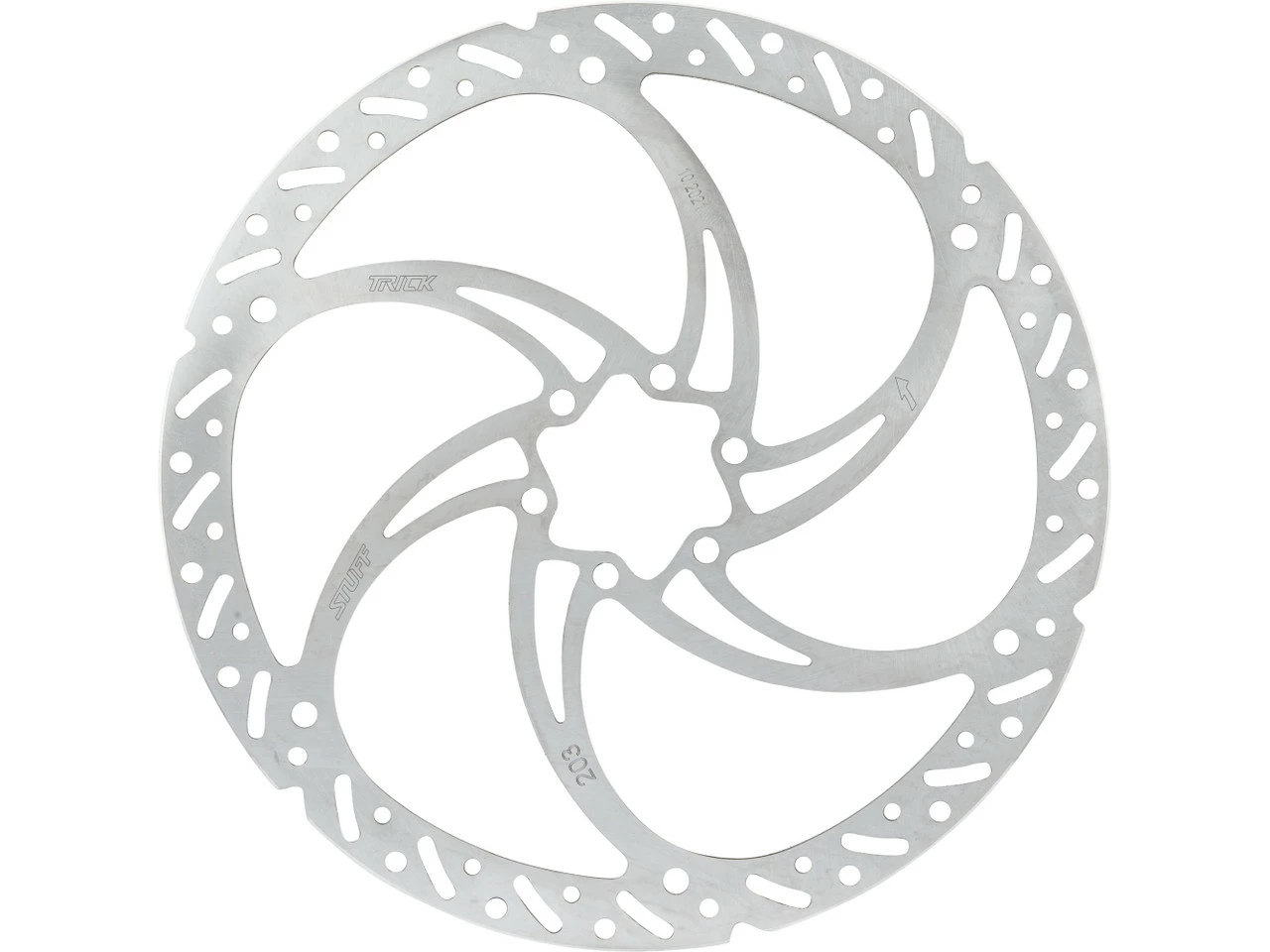 Technische Daten:Montage:6-LochDurchmesser:203 mmBauart:1-teiligMaterial Disc:EdelstahlFeatures:mit Dächle-Fase (dachförmige Abschrägung an der Kante) zur einfachen Montageeher massiver Reibring absorbiert viel Bremswärme, um nicht vorzeitig zu überhitzenLochanordnung für Belagsreinigung über die gesamte Breite und zuverlässige Bremsleistungschlanke Stege zur Gewichtsersparnissehr hohe Zugfestigkeit dank hochfestem, vakuumgehärtetem Edelstahlfür lange Abfahrten und Dauerbremsungen geeignet15,5 mm Reibringbreite2,05 mm Dicke für Stabilität, Langlebigkeit, Fadingresistenzauf eine Planheit von +/- 0,01 mm geschliffenHerstellernummern:160 mm:BRDSH16IN0000S180 mm:BKDSH18IN0000S203 mm:BKDSH20IN0000SLieferumfang:1 x Bremsscheibe Trickstuff Dächle-Disc HD