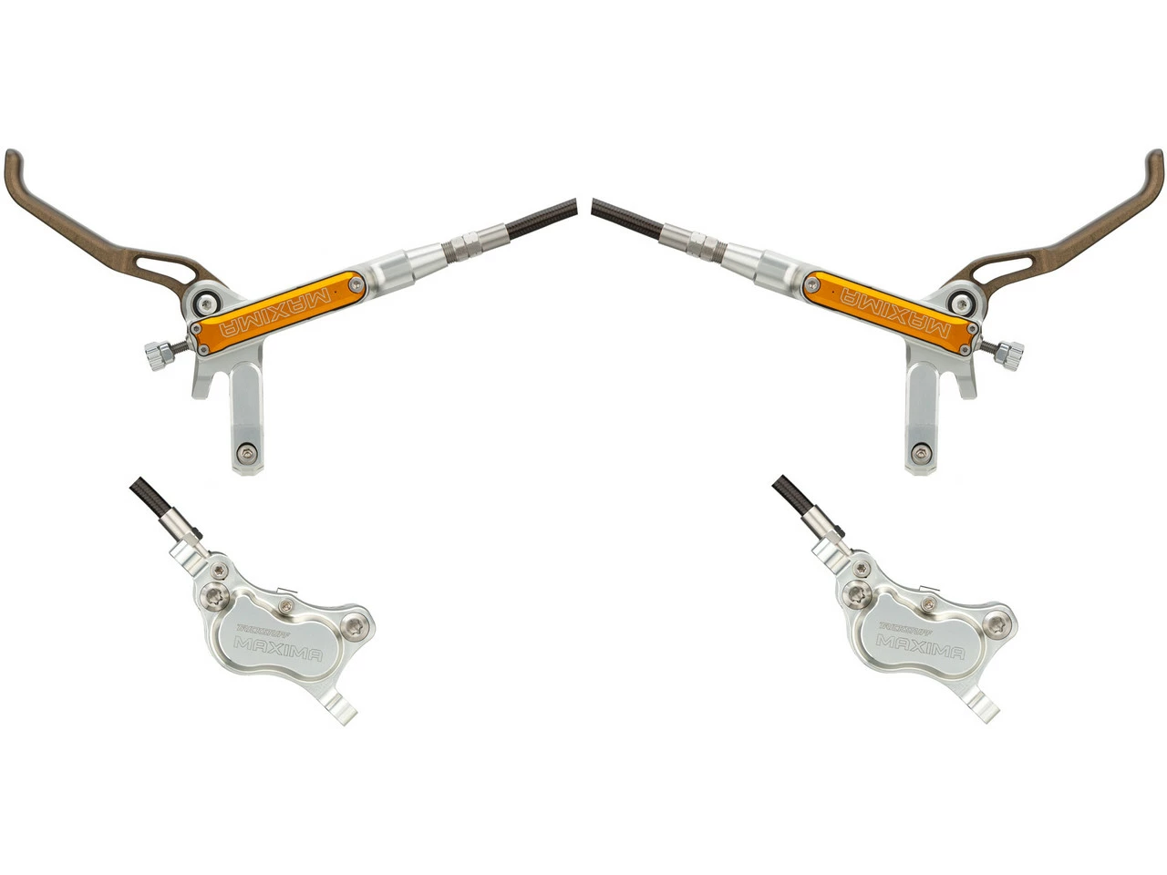 Spezifikationen:Serie:MaximaEinsatzbereich:Cross Country, All Mountain, Enduro, Trail, DownhillBremsentyp:hydraulisch, 4-KolbenBremsmedium:Mineralöl (Bionol)Leitung:StahlflexLeitungslänge VR/HR:900 mm / 1700 mmTechnische Daten Bremssattel:Montage Bremssattel:Postmount (IS über Adapter)Kolben:4Bremsbelag:POWER organischMaterial Bremssattel:AluminiumLeitungsanschluss:Goodridge FittingTechnische Daten Bremsgriff:Hebellänge:2-FingerEinstelloptionen:GriffweiteneinstellungMontage:Klemmschelle (geteilt)Bauart:rechts / links (seitenspezifisch)Material Bremshebel:AluminiumMaterial Bremsgriffgehäuse:AluminiumLeitungsanschluss:Goodridge FittingFeatures:herausragende Optik und HaptikVerwendung von CNC-gefrästem Flugzeugaluminium 7075 T6bietet einen klar definierten Druckpunkt9 mm Geberkolben16 mm und 17 mm NehmerkolbenVerwendung von hochwertigem Mineralöl (organisches Bionol)werkzeuglose Hebelweitenverstellungoptional sind verschiedene Schalthebel-Interfaces für SRAM und Shimano (I-Spec 1, 2 und EVO) erhältlichHerstellernummer:silber-orange:MXA silber/orange VR 900 mm HR 1700 mm