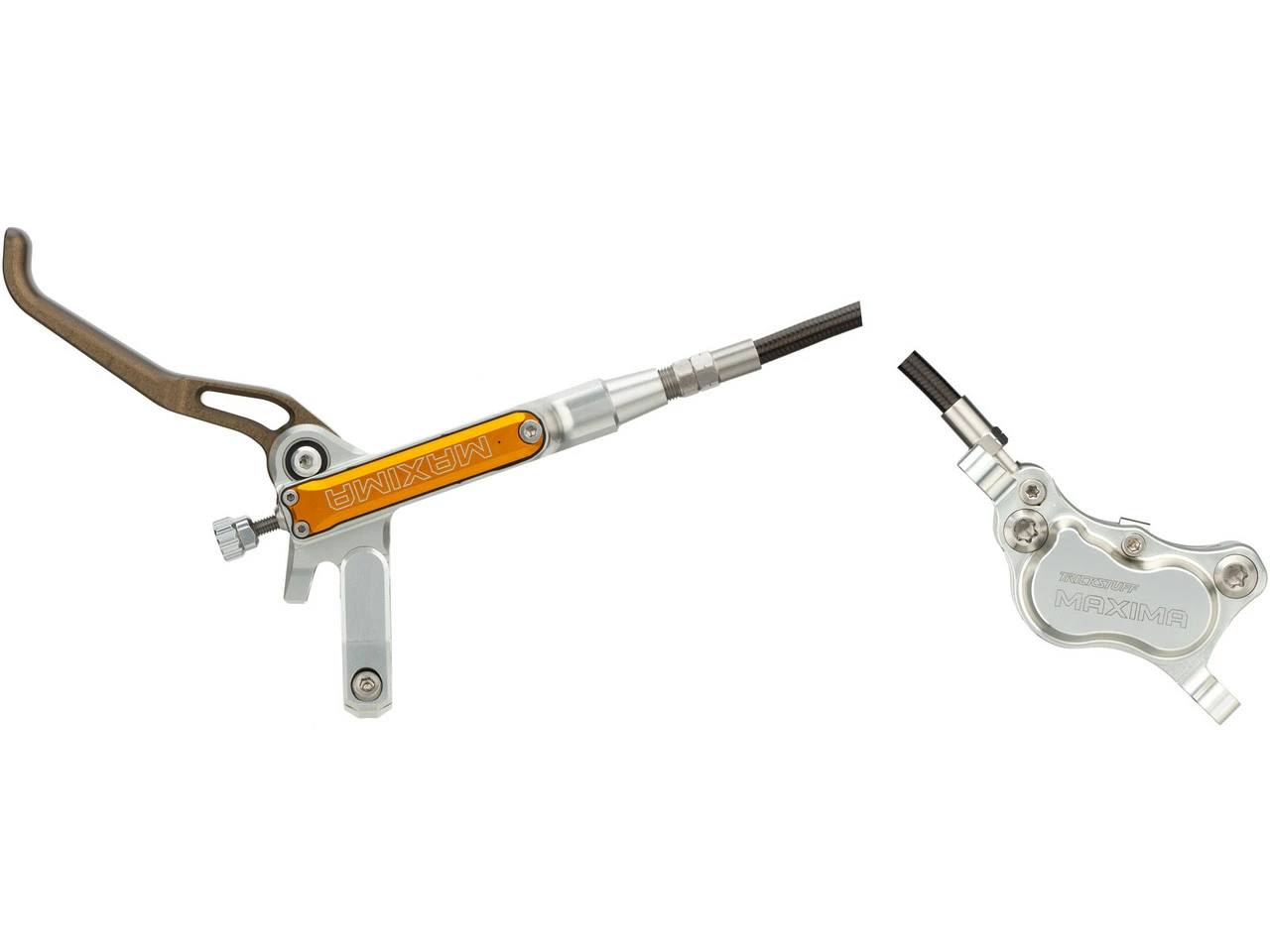 Ausgehend von der Trickstuff Direttissima verfügt die Maxima über höhere mechanische und hydraulische Übersetzungen, eine höhere Wärmekapazität, größere Belagsfläche, längere Fingerhebel mit progressiverer Übersetzung und mehr Masse am Bremssattel für höhere Steifigkeit.
